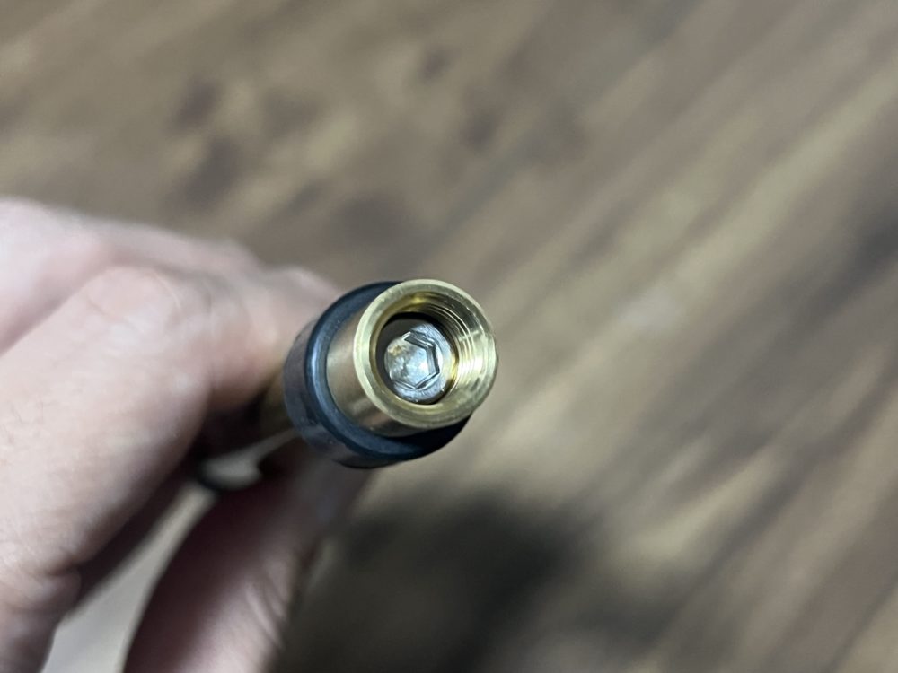 インナーウエイトは真鍮製で、手前側の六角をまわすと…