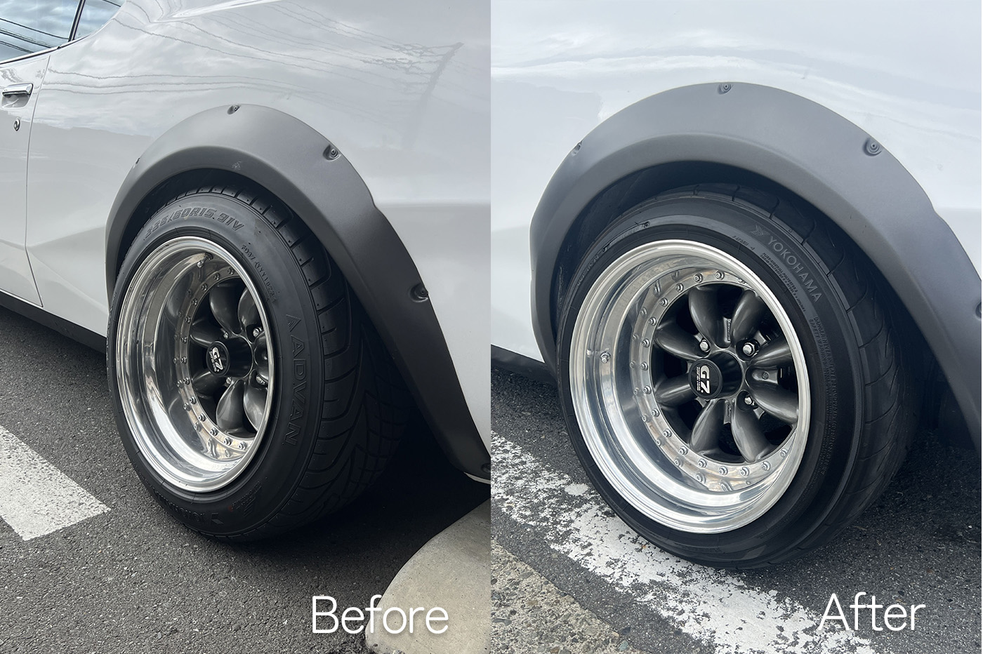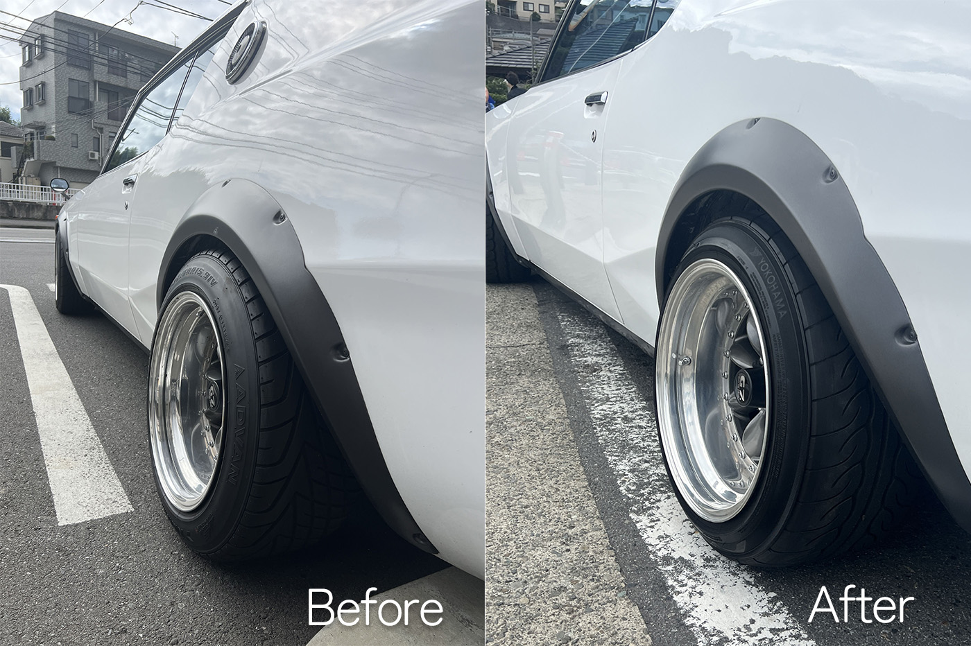 取り付け後。リアにワイトレ20mmを装着してもらいました。いい感じで迫力が出たのではないでしょうか。